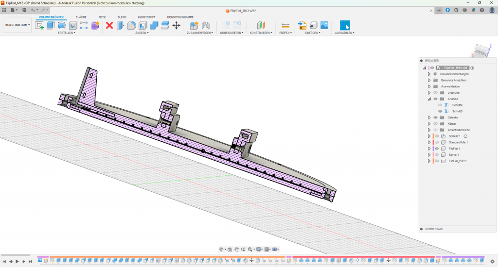 Die mechanischen Teile wollte ich komplett selbst mit meinem Prusa MK4 3D-Drucker herstellen. Hierfür entschied ich mich für PETG als Material, da es eine ideale Kombination folgender Eigenschaften bietet: