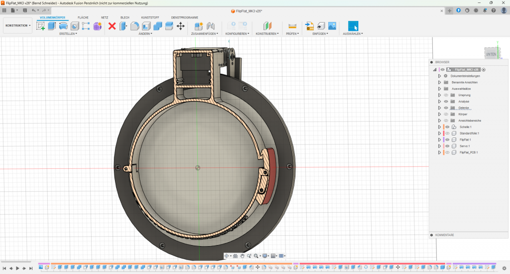 Schon seit einiger Zeit wünschte ich mir eine Flatfield-Folie, die sich automatisch vor die Optik eines Teleskops klappen lässt, um entsprechende Aufnahmen zu erstellen. Der hohe Preis solcher Folien war jedoch stets ein Hindernis: Bereits für kleinere Teleskope beginnt der Einstieg bei etwa 150 €. Zudem wirken diese Produkte oft klobig und relativ schwer.